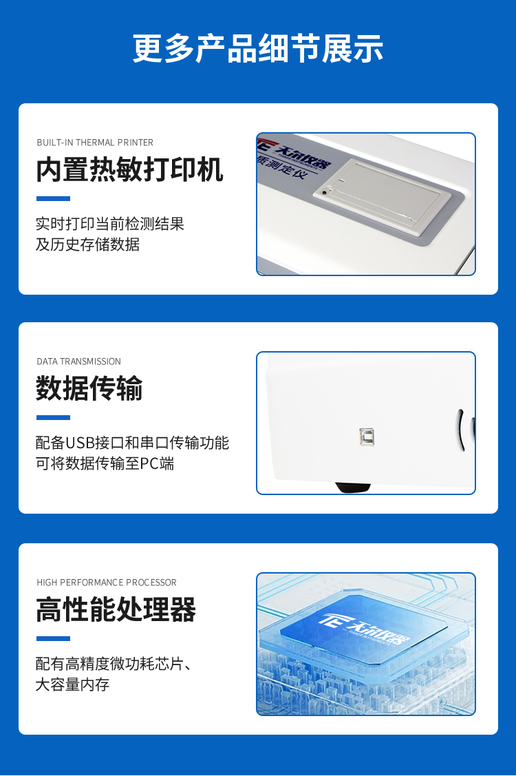 其应用场景已全面覆盖饮用水厂水质出厂检测、食品饮料厂生产用水监控、环保部门水体抽检及污水处理厂工艺控制等领域。仪器支持100万组检测数据存储,内置热敏打印机可即时输出检测报告,配备USB Type-C数据接口,实现数据与电脑端的快速同步归档,满足《生活饮用水卫生标准》等法规对检测数据可追溯性的要求,为水质管控提供全流程技术保障。
